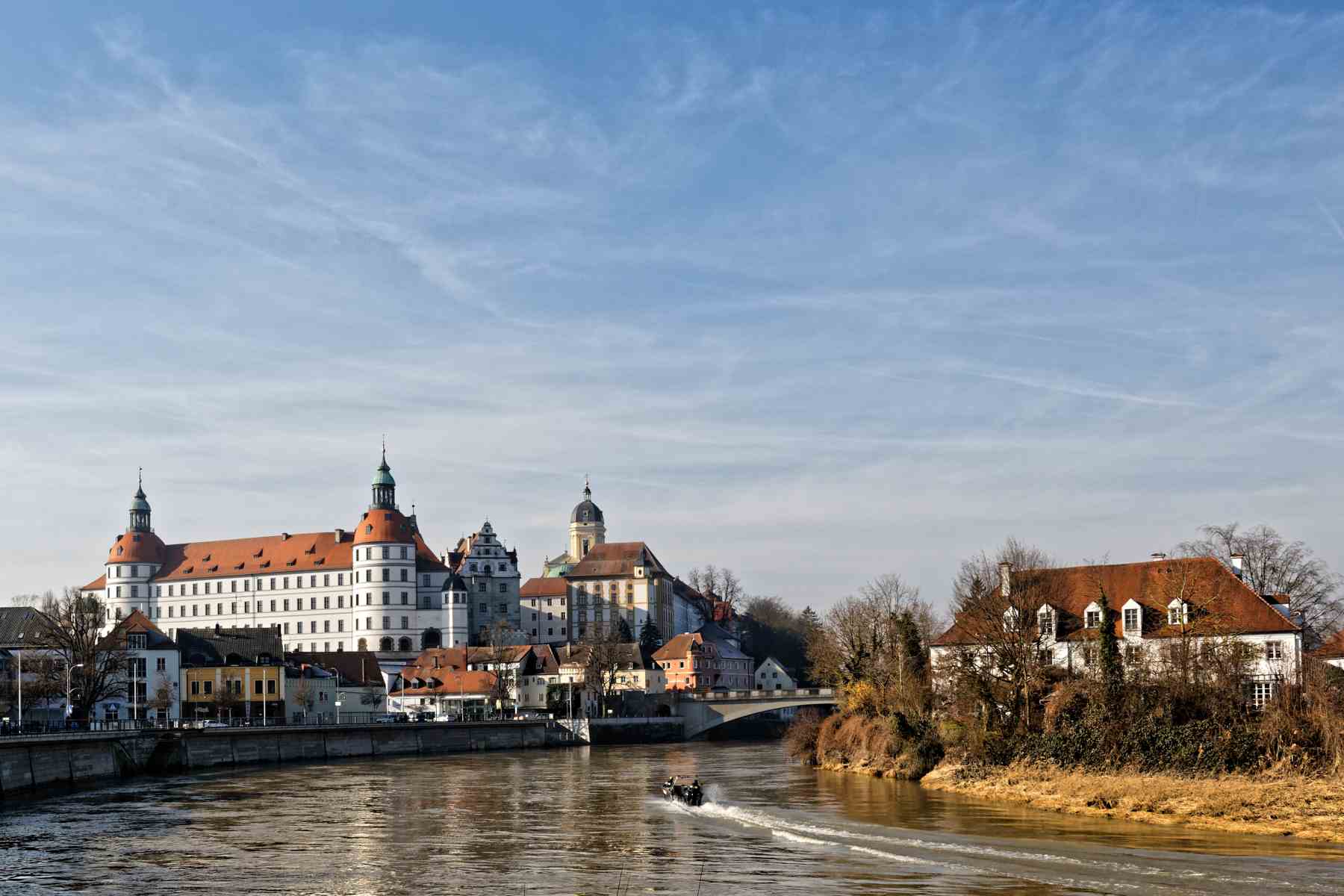Die große Kreisstadt Neuburg liegt an der Donau an der Grenze zwischen Fränkischer Alb im Norden sowie Donaumoos und Hügelland im Süden. Das Stadtbild wird durch die historische Altstadt geprägt. Direkt an der Donau wird das Stadtbild durch die prächtige Schlossfassade mit den zwei markanten Rundtürmen geprägt.