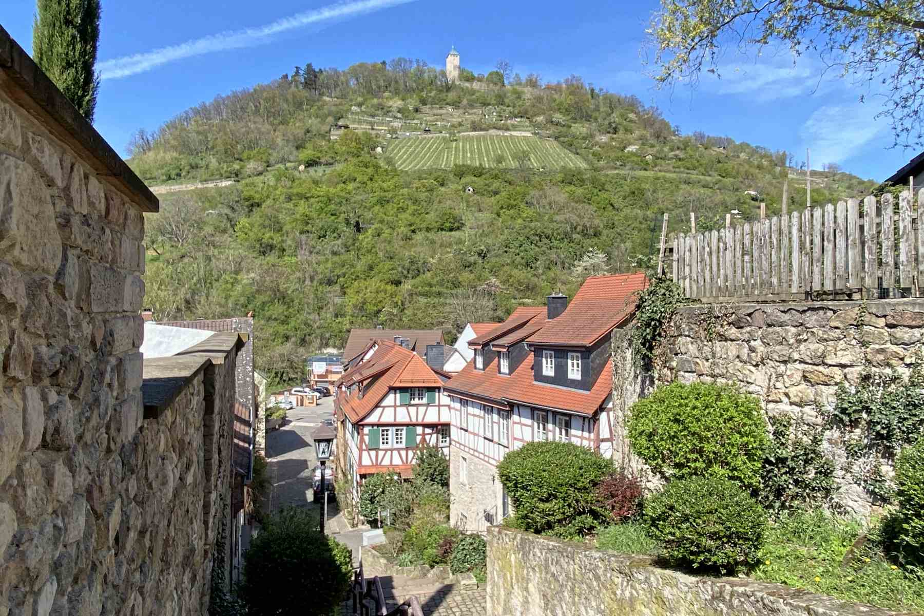 Wer gut zu Fuß ist, dem empfehle ich einen Aufstieg zur Starkenburg. Ich habe den Aufstieg hinter dem Dom, gegenüber der Siegfriedstraße gewählt. Knapp 1/2 Stunde habe ich benötigt und wurde dann mit einem Panorama über die Stadt bis hin nach Mannheim belohnt.