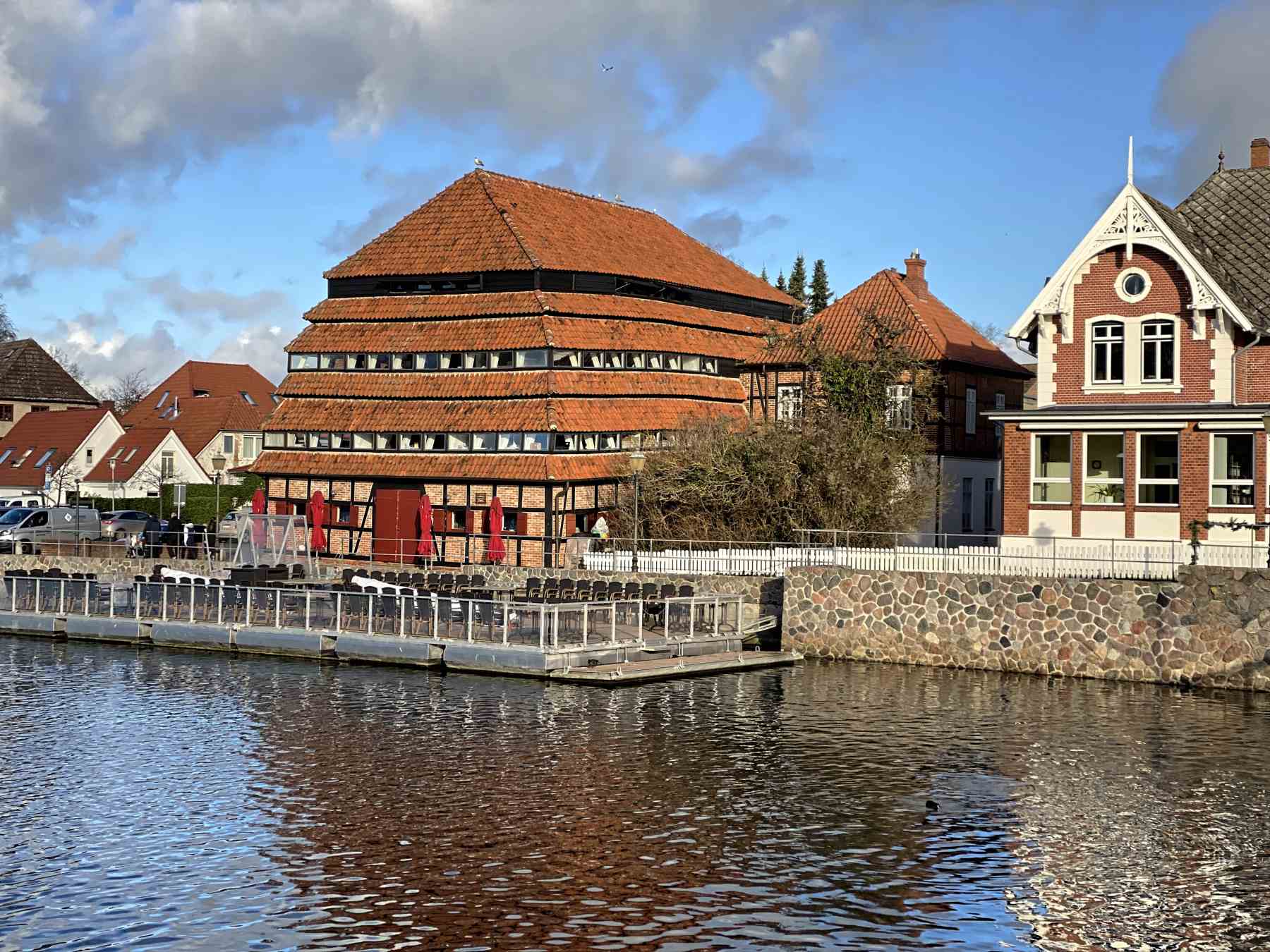 - Der Pagodenspeicher liegt direkt an der Brücke am Binnenwasser. Das Gebäude wurde als Kornspeicher 1830 erbaut.