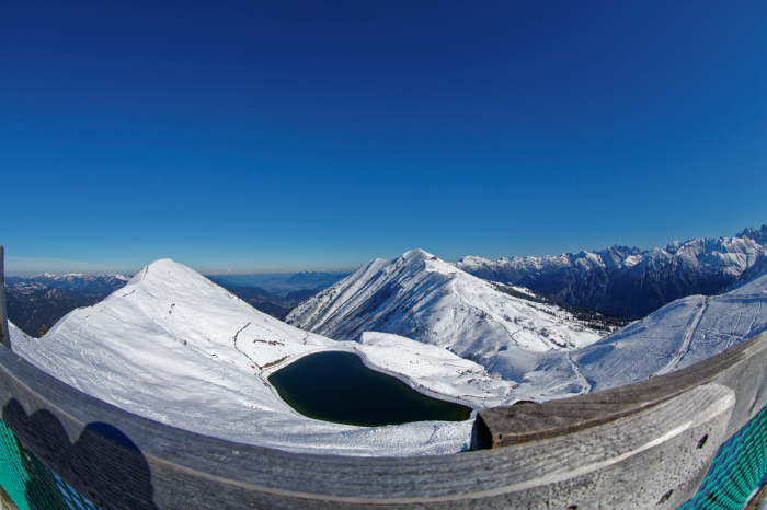 Heute bin ich zu nächst mit der ersten Seilbahn auf das Nebelhorn gefahren. Wolkenloser Himmel und fast kein weiterer Besucher auf der Gipfelstation machten es möglich, wunderschöne Panoramaaufnahmen zu machen.