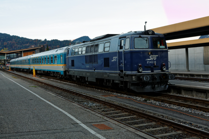 Am Abfahrtstag gab es für Eisenbahninteressierte noch ein kleines Schmankerl am Bahnhof zu sehen: Der ALEX nach Immenstadt war mit einer SVG Leihlok bespannt.