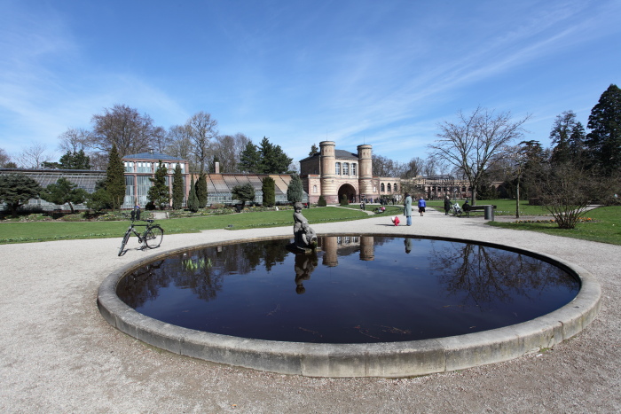 Nach knapp 5 min bin ich bei der Hauptpost angekommen. Weiter in Richtung der Münze. Leider war das Gebäude eingerüstet und mit Staubschutz versehen. Von dort sieht man schon das nächste Ziel: Die Orangerie. Daneben befindet sich das Bundesverfassungsgericht. Im Mittelpunkt der Stadt das Schloss. Alle Straßen laufen fächerförmig auf das Schloss zu bzw. vom Schloss weg. Leider ist der Schlossgarten zu dieser Jahreszeit noch sehr trist. Keine Brunnen, keine Statuen, keine Bepflanzung. Außerdem war der gesamte Schlossplatz eine Baustelle.