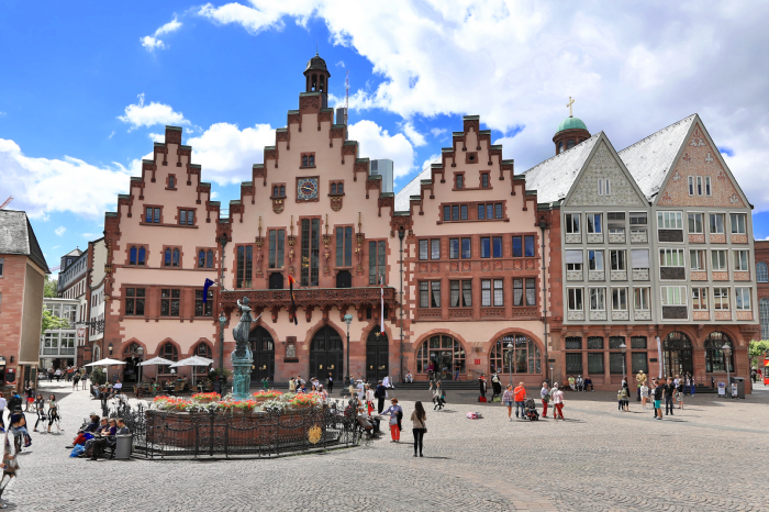Mit rund 690.000 Einwohnern ist Frankfurt am Main die fünftgrößte Stadt der Bundesrepunlik und zugleich die größte Stadt von Hessen. Frankfurt ist ein international wichtiges Finanzzentrum, neben der Europäischen Zentralbank haben viele Kreditinstitute ihren Stammsitz dort. Die Skyline ist geprägt von Wolkenkratzern, weshalb die Stadt oft auch Meinhattan genannt wird. Die berühmteste Sehenswürdigkeit der Stadt ist der Römer, das Rathaus.
