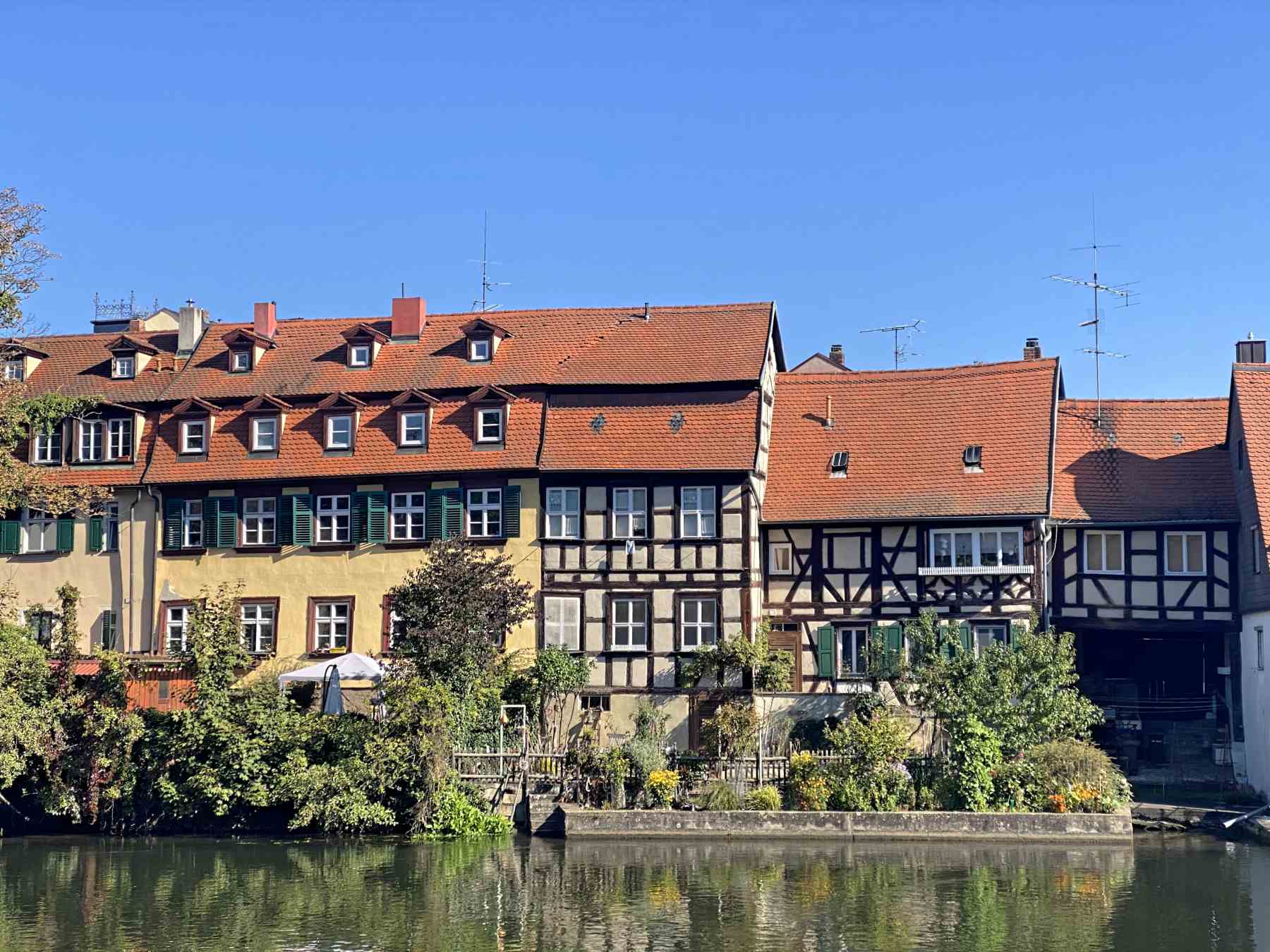 Wir erreichen den linken Pegnitzarm. Rechts hat man einen schönen Blick nach "Klein Venedig). Auf der Brücke in der Pegnitz steht auch das berühmte Alte Rathaus.