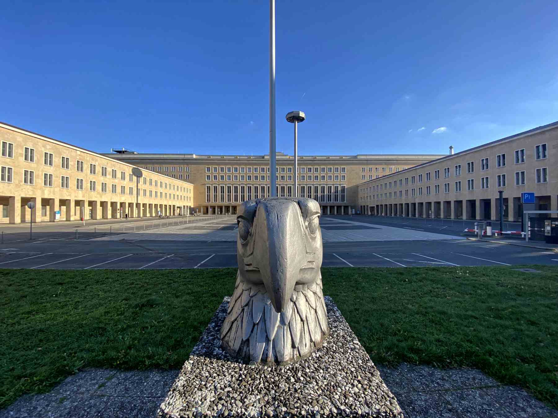 Der Neubau erfolgte ab 1934 im neoklassizistischen Stil durch den Architekten Ernst Sagebiel. Die 1200 lange Flughalle mit Hangar und die Empfangs- und Verwaltungsgebäude wurde wie viele NS Bauten aus der damaligen Zeit mit Natursteinplatten aus Muschelkalk verkleidet. Die vielen Reichsadler an den Außenwänden des Komplexes sind noch stumme Zeitzeugen.