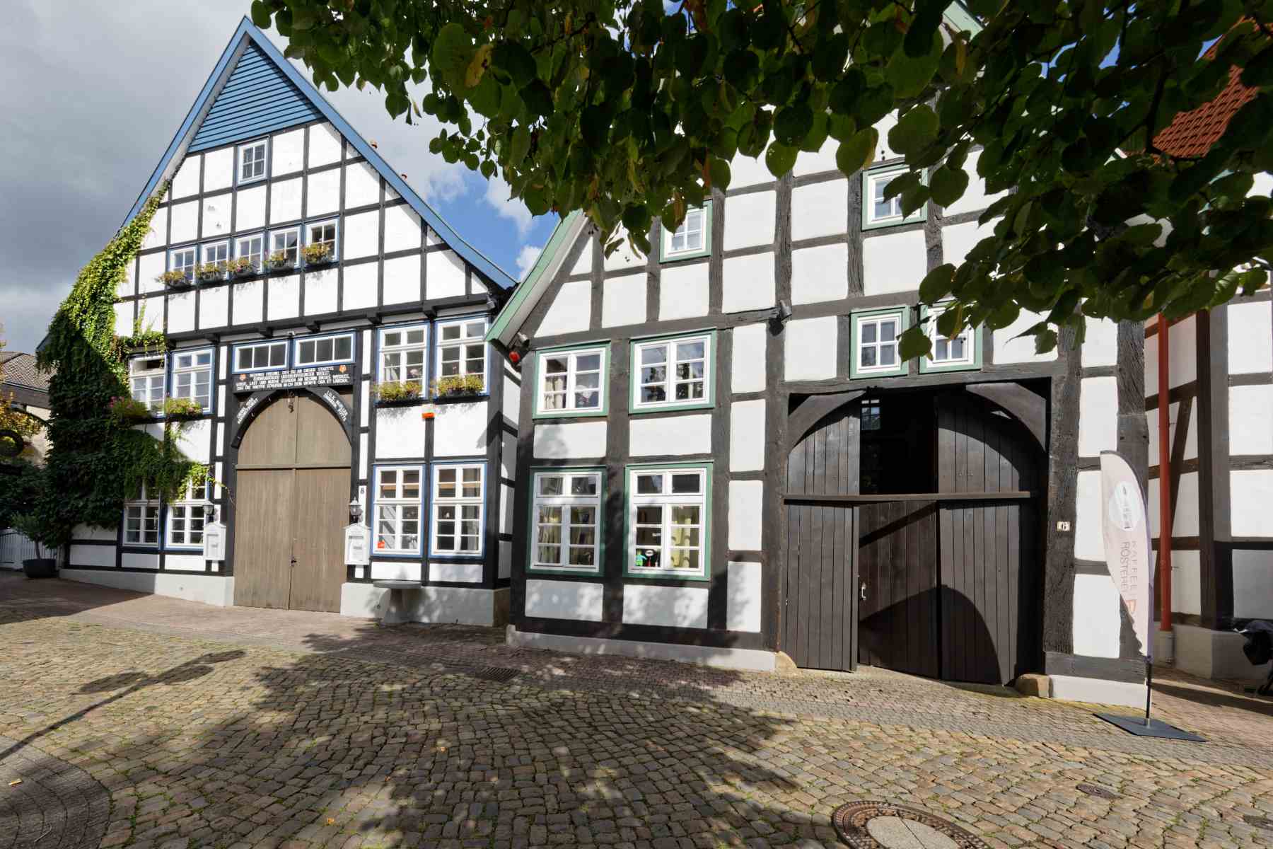 Bereits im Mittelalter war die Stadt durch die örtliche Salzgewinnung reich geworden, dieses spiegelt sich in den sehr aufwendig verzierten Fachwerkhäusern wieder. Hierbei handelt es sich zu meinst um giebelständiger Fachwerkbauten aus dem 16. und 17 Jahrhundert. Eines der Bedeutesten noch erhaltenes Weserrenaissance-Ensembles in Ostwestfalen steht in der Fußgängerzone in der Langen Straße 5 bis 9.