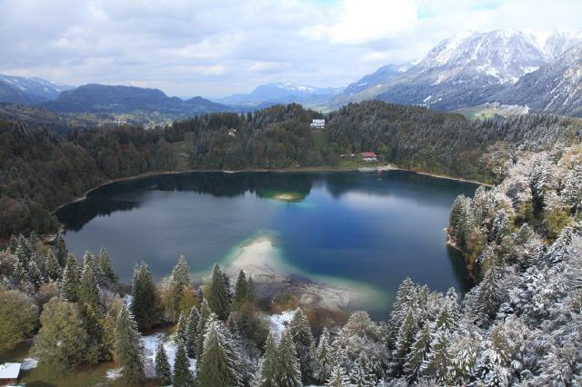 Ursprünglich planten wir eine Wanderung nach Gerstruben - einem ehemaligen Bergbauerndorf im Dietersbachtal und in 1155 m Höhe gelegen. Die Bewölkung war nicht so stark wie angesagt und wir sind kurzerhand heute zum zweiten Mal auf das Nebelhorn gefahren. Die ersten Bilder zeigen Eindrücke von unserer Unterkunft bis zur Talstation der Nebelhornbahn. Die Bergbahnen schließen ab 03.11. und gehen dann in die Revision. In dieser letzten Woche sind spürbar weniger Touristen unterwegs, es gibt keine Wartezeiten an der Bahn. Die Aussicht heute ist nicht vergleichbar mit der Wolkendecke von gestern, aber auch die Fernsicht war bei diesem Besuch des Nebelhorns noch nicht optimal. Wir haben die Talfahrt an der Station Seealpe unterbrochen. Von dort sind wir Richtung Oberstdorf gewandert. Statt dem Straßenweg haben wir den Schotterweg genutzt, der zwar noch teilweise Schneebedeckt war, aber mit gutem Schuhwerk gut zu begehen war. Dieser führt direkt an der Erdinger Arena (Skisprungschanze) vorbei, die ein Austragungsort der alljährlichen Vierschanzentournee ist.