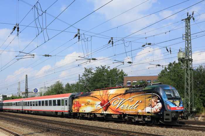 Der Fotopunkt liegt etwas südlich von der Theresienwiese und ist ab dem Hauptbahnhof schnell per U- oder S-Bahn erreichbar. Es ist ein in München beliebter Spotterpunkt, denn auch ich stand nicht alleine auf dem Bahnsteig. Den ganzen Tag steht die Sonne im Rücken, der Verkehr in Richtung Österreich/Italien führt an diesem Standort vorbei. Neben üblichen, aber abwechselungsreichen Nahverkehr verkehren dort die EC in Richtung Salzburg und Kufstein. Abgerundet wird das Eisenbahnspektrum mit Güterzügen.