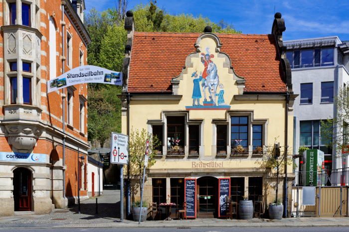 Nach überschreiten der Brücke gelangt man auf den Krämerplatz. Hier gibt es, insbesondere in den Nebenstraßen schöne Hausmotive. Direkt am Krämerplatz ist unübersehbar der Eingang zur Standseilbahn, die zum Stadtteil Weißer Hirsch hinauf fährt. Die 547 m Streckenlänge umfassende Bahn wurde 1895 in Betrieb genommen und überwindet einen Höhenunterschied von 96 m.