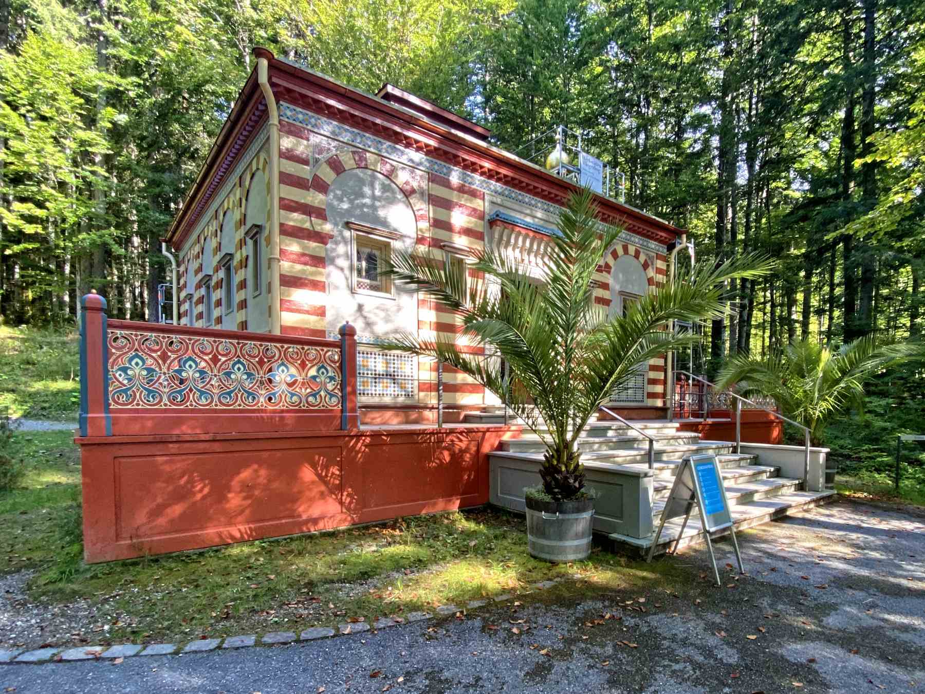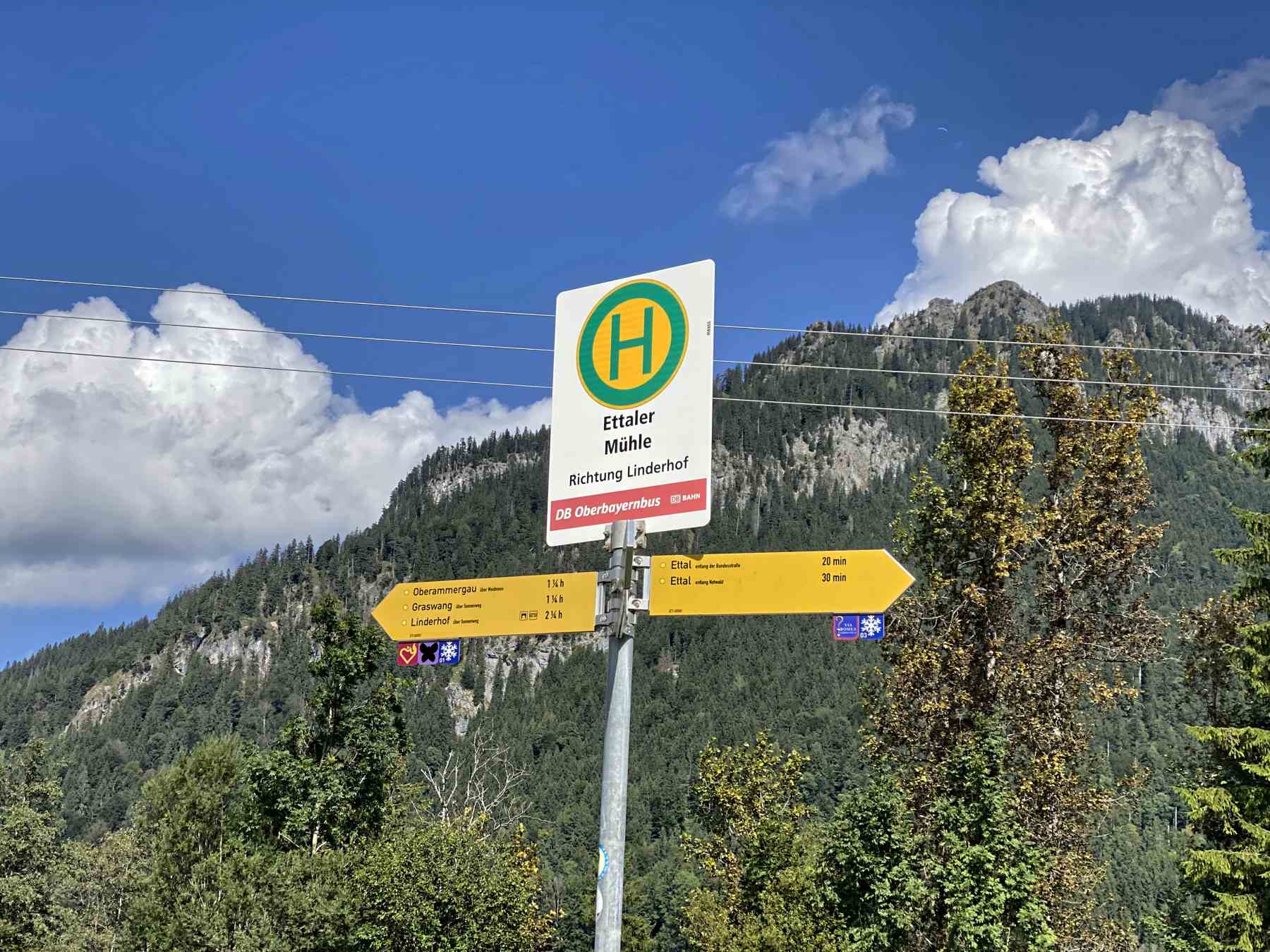 Die Bushaltestelle Schloss Linderhof ist direkt unterhalb des Eingangs zum Schloss und zum Schlosspark (Bild 01).